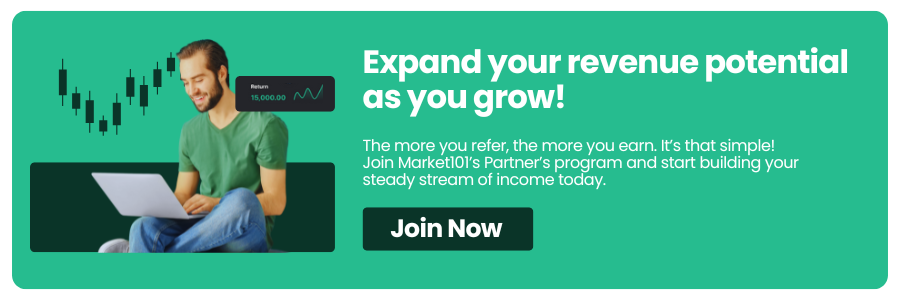 Partner with M101 Turn Connections into Commissions Enjoy returns on every referral. Your network is a your pool of limitless opportunities! Sign Up as a Partner Market101 is known for its excellence in trading solutions, reliability, and commitment to Partner success. Why Choose Market101? Commission Rebate 0 % International Reach 0 + Partners Today 0 K+ How Much Can You Potentially Generate? Client’s Account Type: ECN Client’s Volume: 10 Lots Commission per Lot: $4 Your Total Commission: $16 Multiply this by every client and trade to see your income grow. Join Now How to Become a Market101 Partner? Step 1: Register with Market101 Create your account in just a few minutes. Step 2: Verify Your Account Get verified, become an IB and invite traders and partners. Step 3: Get Your IB Commissions Start sharing your unique referral link and earn your commission. Become a Partner Today Copyright @ 2024, FameFox, All Rights Reserved. Privacy Policy